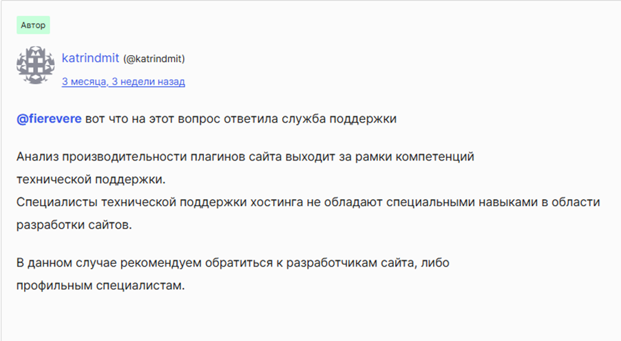 Вы обращаетесь в техподдержку хостинга и получаете один из двух типовых ответов. Первый звучит так: «Анализ плагинов выходит за рамки нашей компетенции. Обратитесь к разработчику сайта». Не все хостинг-провайдеры помогают с WordPress-ошибками, особенно если это не серверная ошибка.
