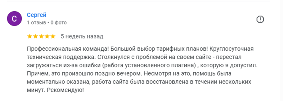 Второй ответ покажем на примере отзыва. Вот что пишет наш клиент Сергей после решения его проблемы техподдержкой: