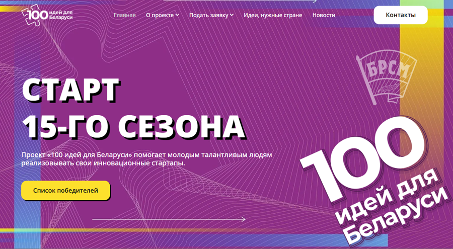 С 2011 года БРСМ организовывает республиканский конкурс стартап-проектов «100 идей для Беларуси». При поддержке Государственного комитета по науке и технологиям, Национальной академии наук и Министерства образования он стал настоящим акселератором молодёжной инициативы.