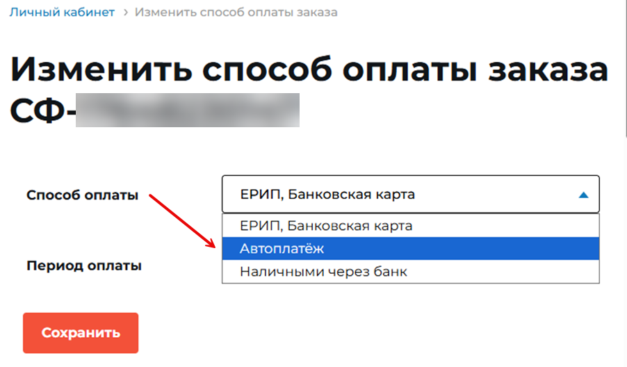 Отменить автоплатёж можно в личном кабинете в разделе заказов. Столбец настроек заказа → «Изменить способ оплаты». Смените автоплатёж на любой другой способ из списка → «Сохранить».