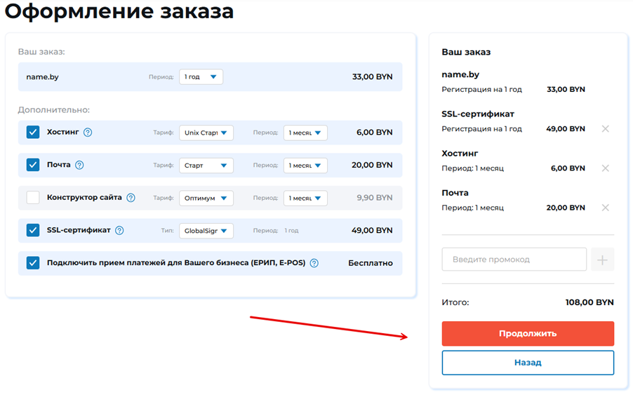 6. Нажмите «Продолжить» и завершите оформление заказа.